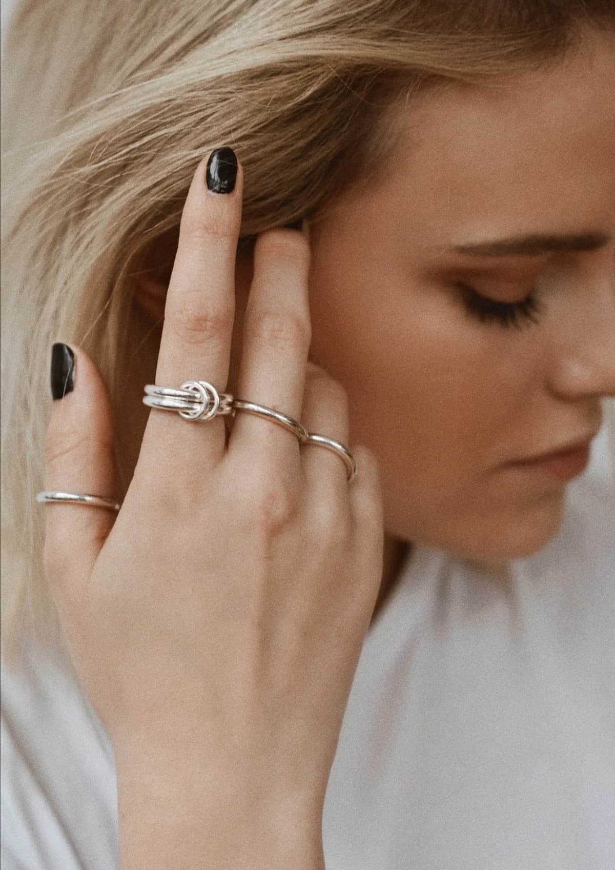 Dubbla ringen, dubbelt så roligt. Bär dem staplade för en rolig vardagslook. Övergång till en kvällslook genom att låta en av ringarna falla ner och röra sig fritt.